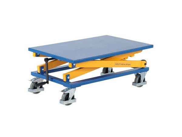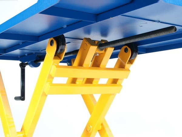 Käärmehhanismiga ratastel tõstelava. 2 ratast on pööravad ja varustatud piduriga.